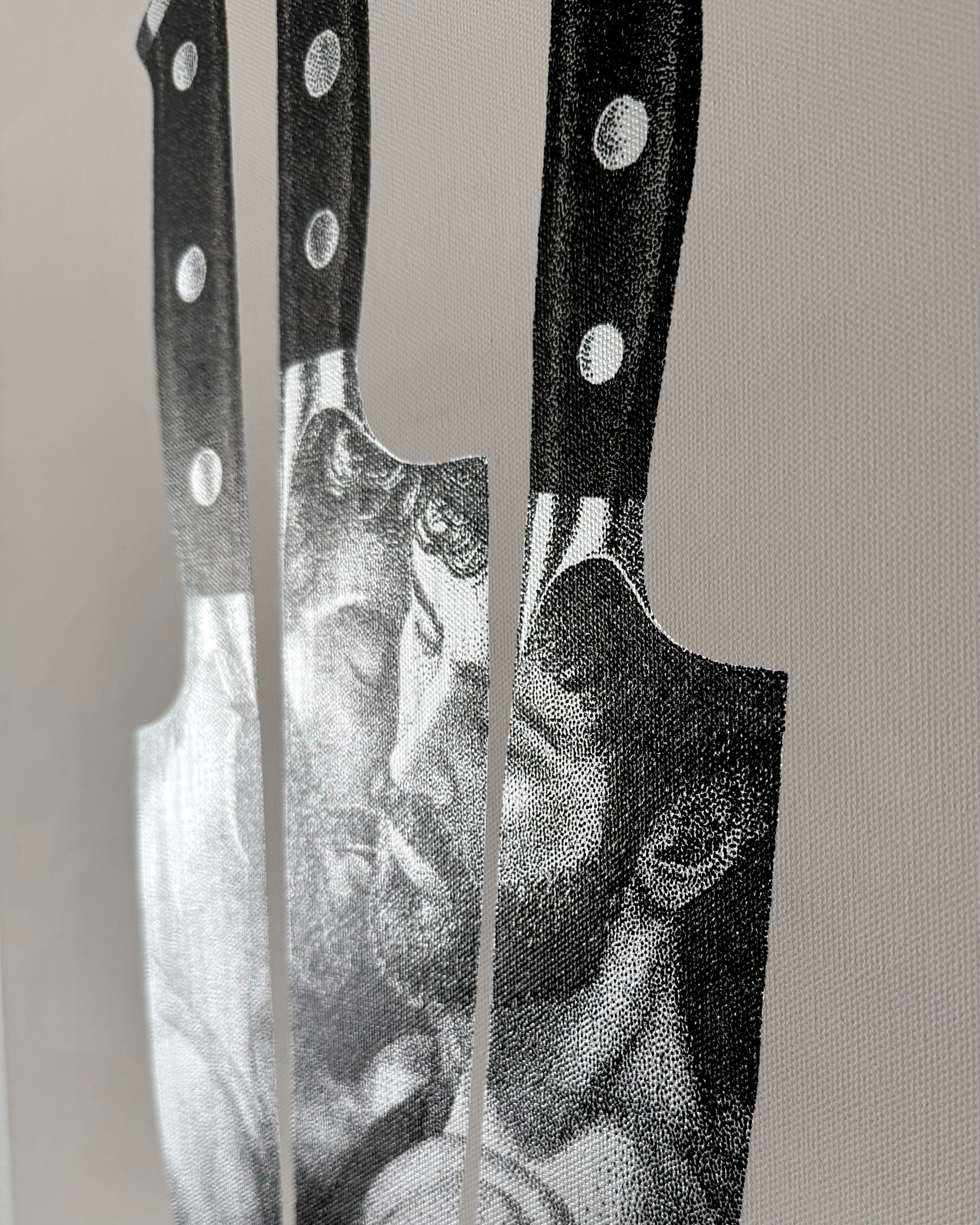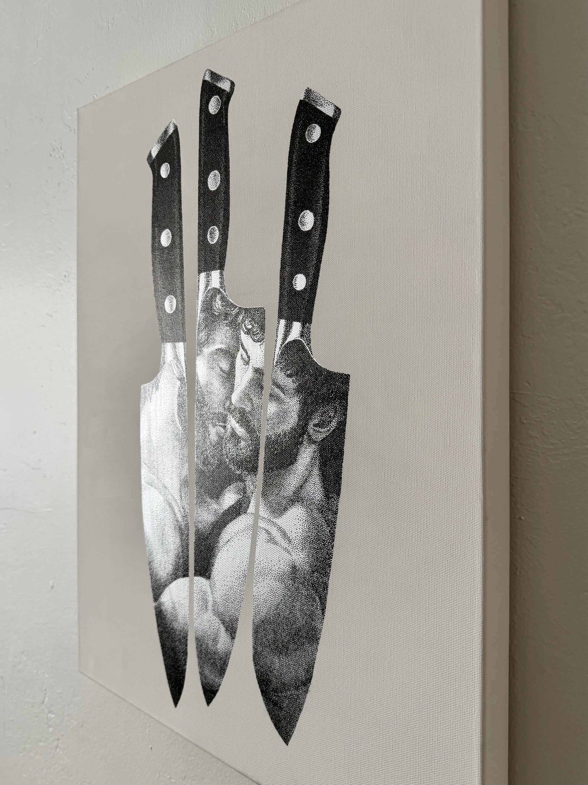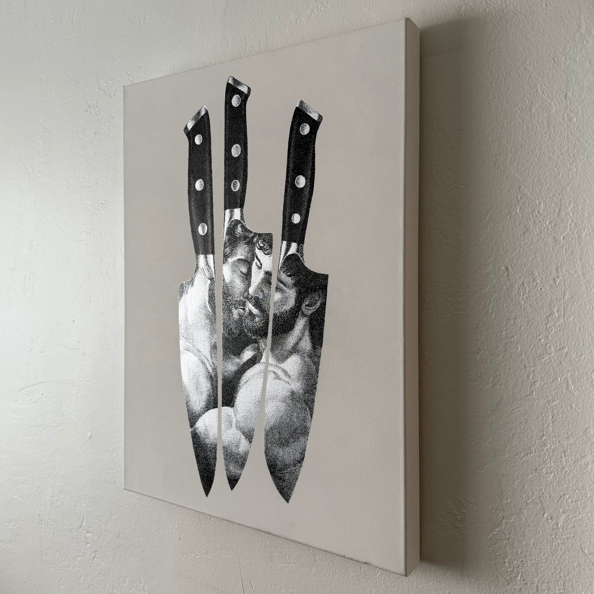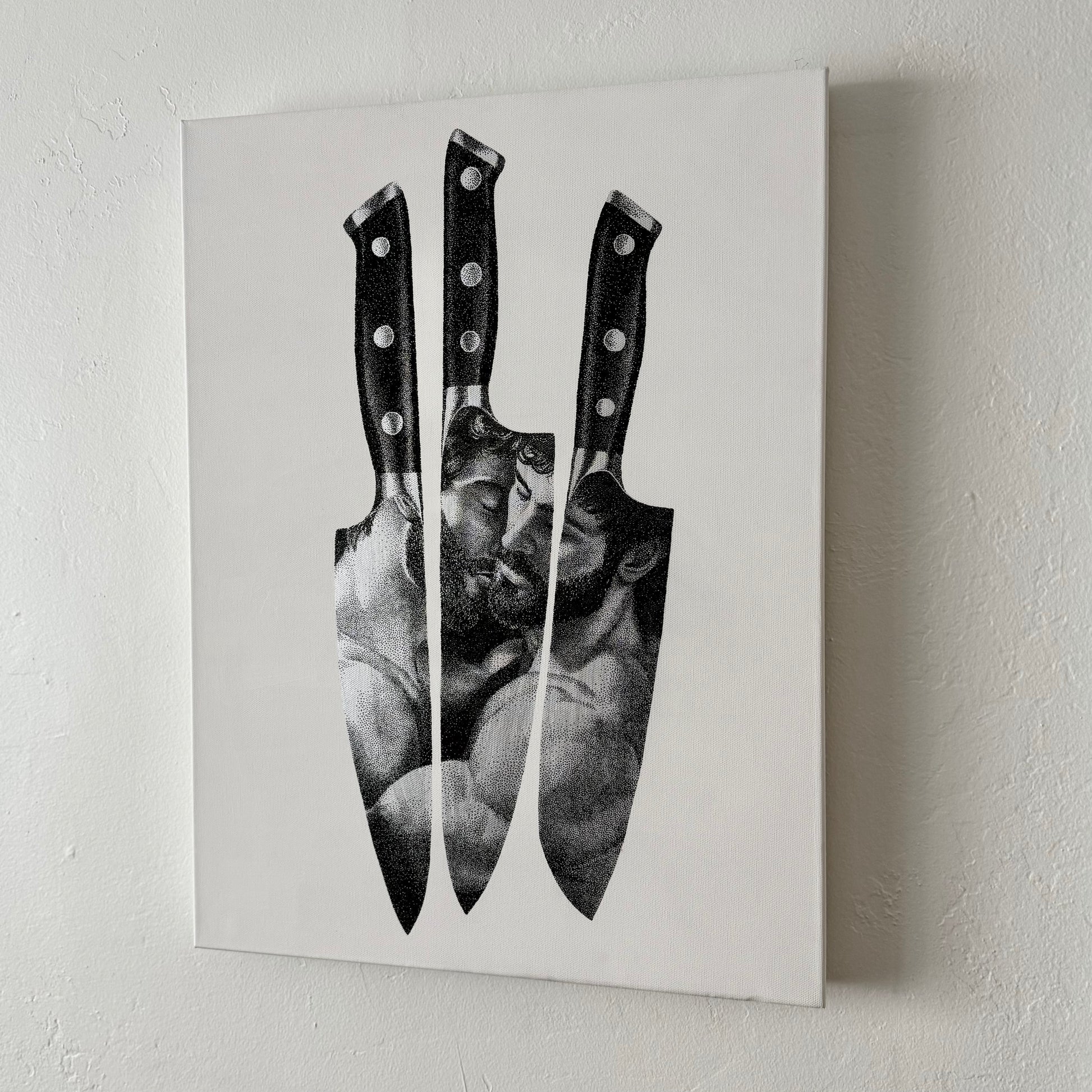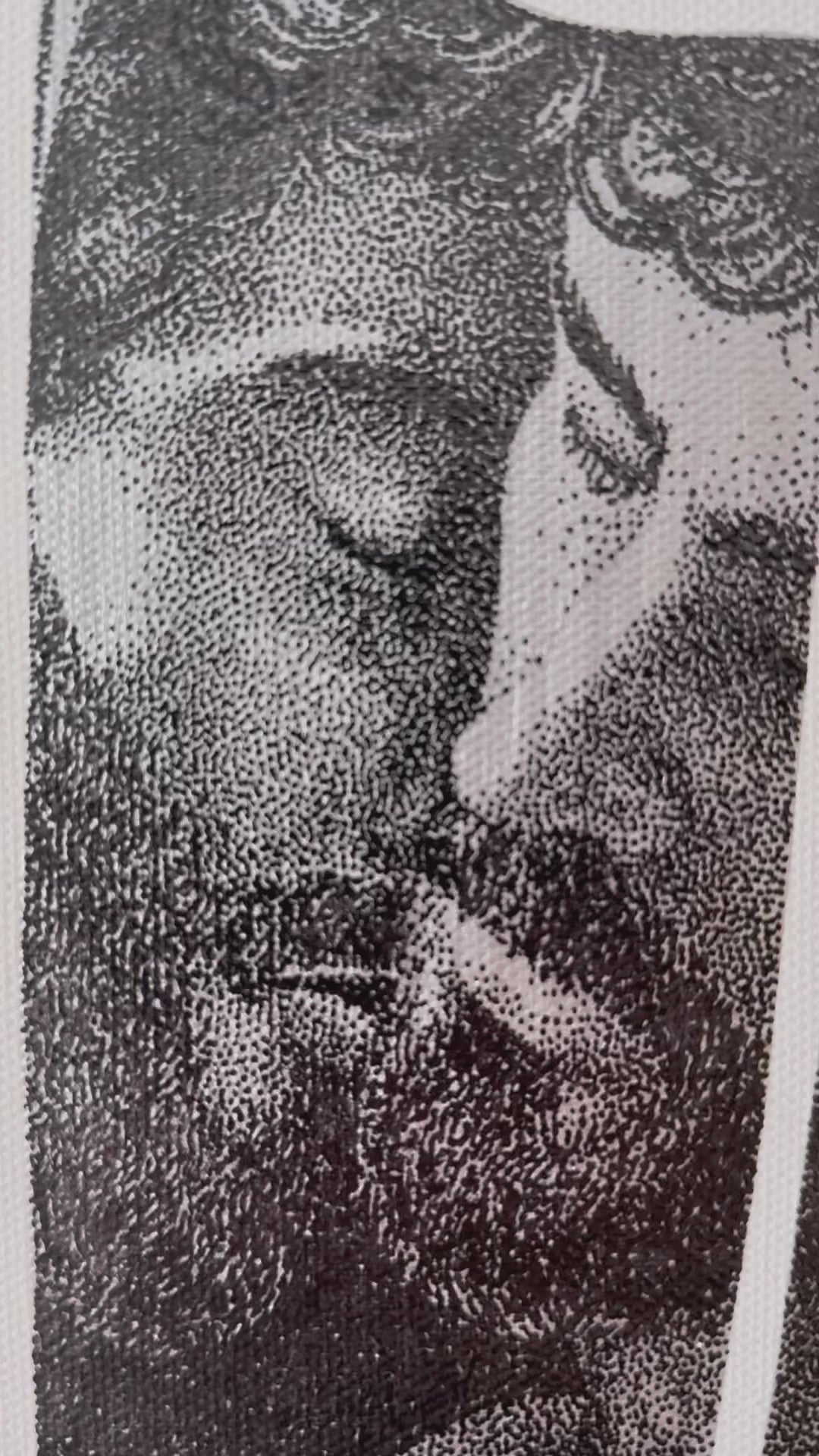 The piece is hand painted on an 18x24 canvas that's 1.5 inches thick. The dotwork is done in black paint on top of a silver background. photos and videos are unedited.